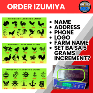 [wpforms id="30651"][wpforms id="21513" title="true" description="true"]Izumiya Weighing Scale – Precision Japanese scale with dual display, waterproof body, and rechargeable battery. Comes with free roost and free laser-engraved name. Can be set in 5-gram increments just like in sabungan.
